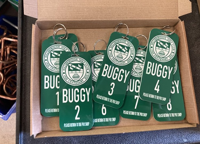 Keep your golf carts organized with our durable buggy/key cart tags. Designed for easy identification, these tags are perfect for golf clubs looking to manage cart assignments efficiently. Made from high-quality materials, they offer long-lasting performance and can be customised with your club’s logo or specific details, adding both functionality and style to your fleet.