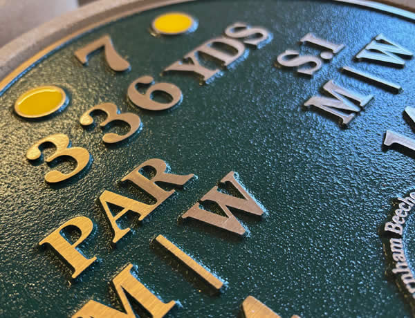 Cast bronze mow-over tee markers are designed with a low-profile structure, allowing groundskeepers to mow directly over them without damaging the markers or mowing equipment. This eliminates the need for careful navigation around markers, saving time and effort in course maintenance.